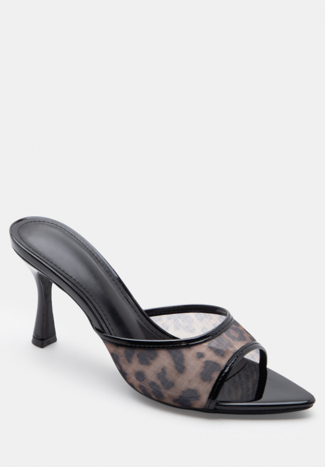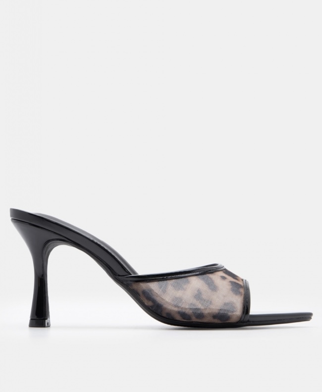 Γυναικεία Mules με Leopard Mesh & Μαύρο