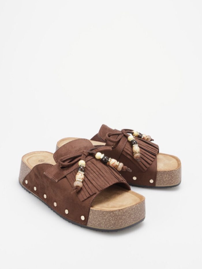 Mules Μυτερά Kαφέ με Μεταλλική Λεπτομέρεια