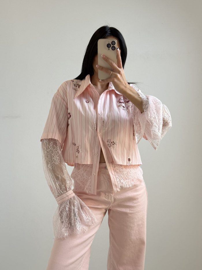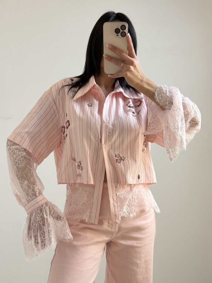Γυναικείο Πουκάμισο με Δαντέλα & Κεντήματα – Ρόζ