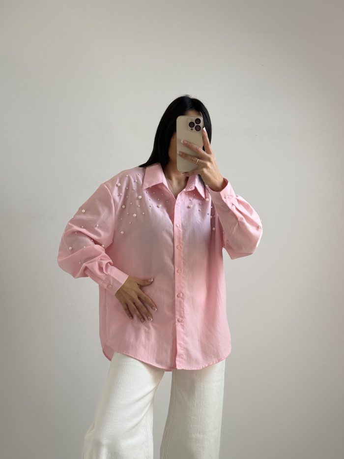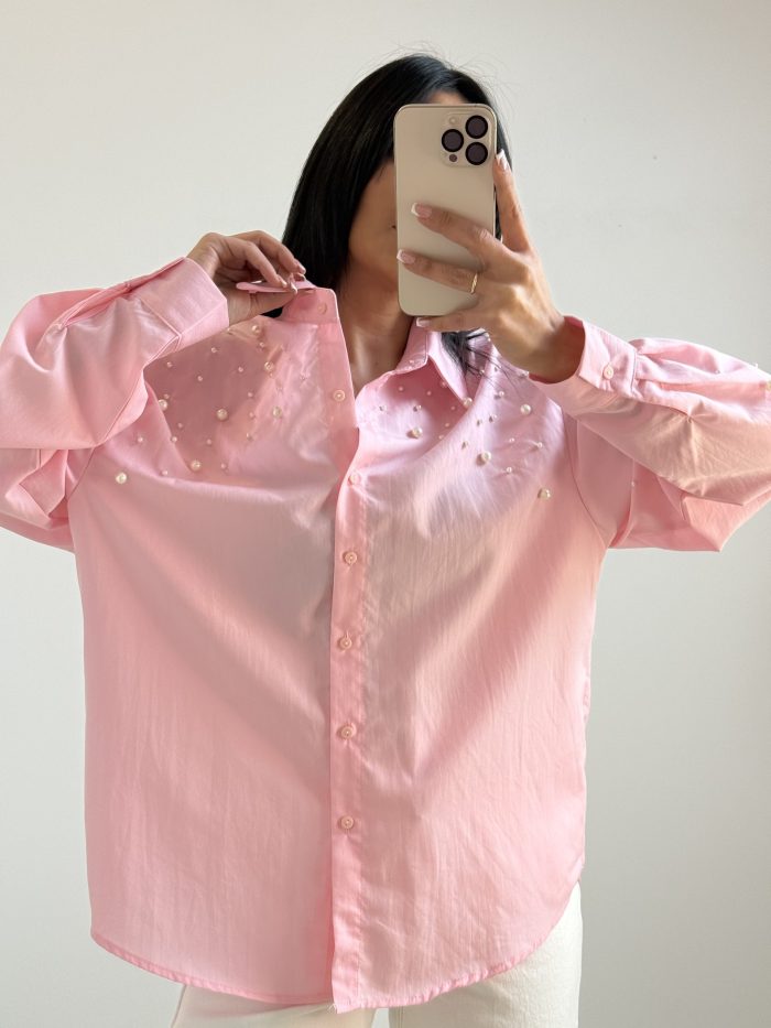 Γυναικείο Πουκάμισο Ρόζ με Πέρλες – Oversized