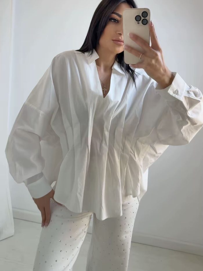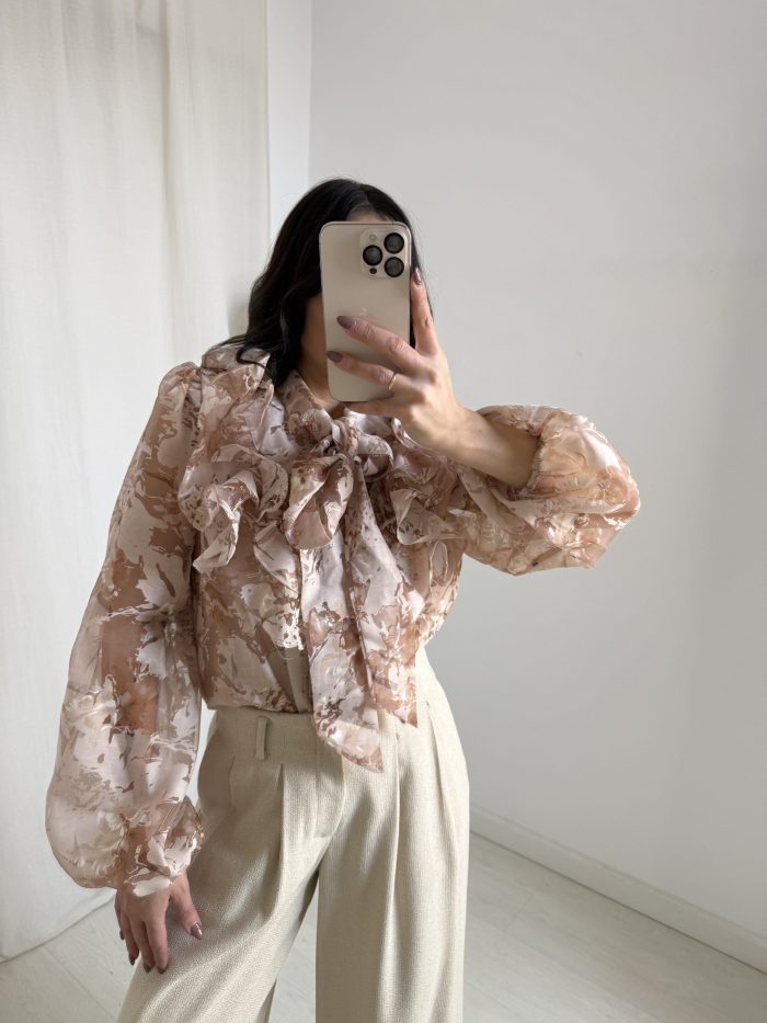 Ρομαντικό Πουκάμισο Οργάντζα με Φιόγκο & Βολάν