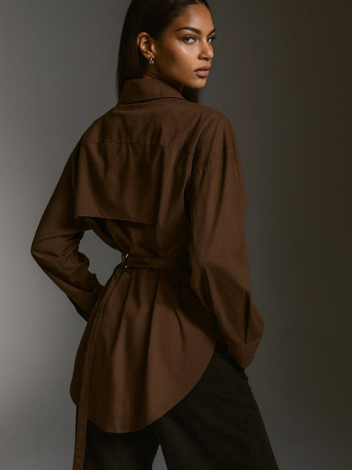 Πουκάμισο Ριγέ με Δέσιμο & Έντονους Ώμους Blue
