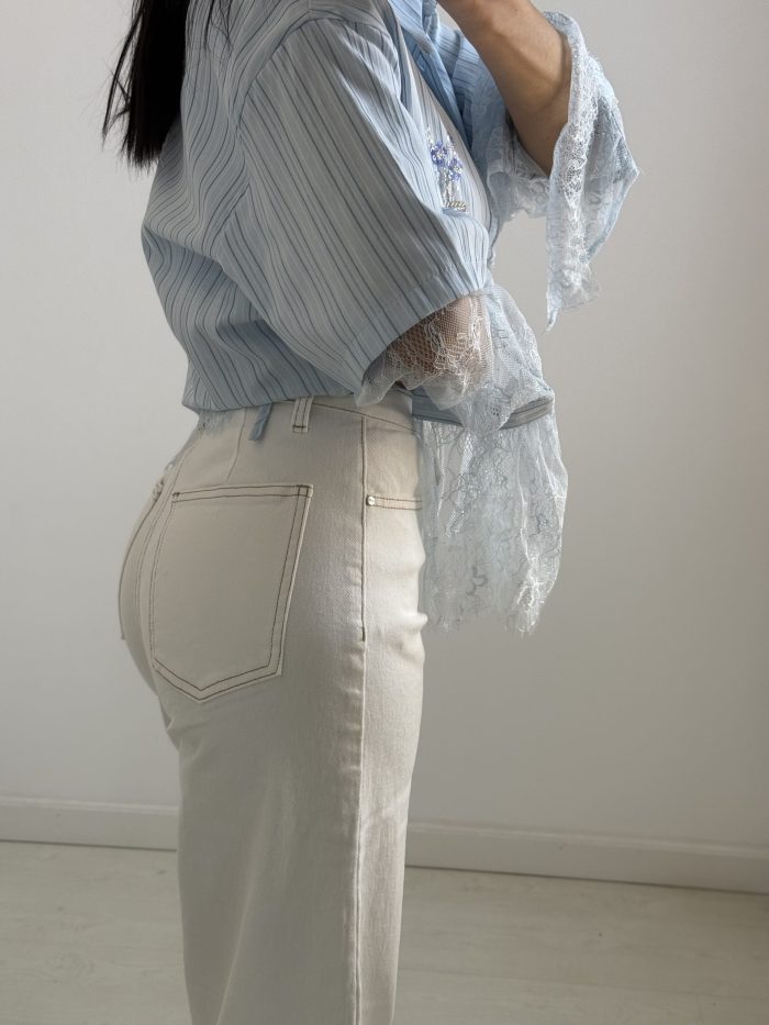 Wide Leg Τζιν Παντελόνι σε Εκρού Απόχρωση – Ψηλόμεσο