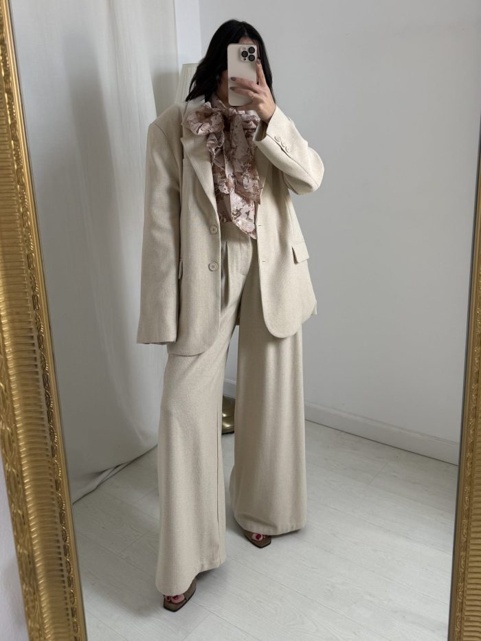Σακάκι με Κλασικό Γιακά Μπεζ Oversized