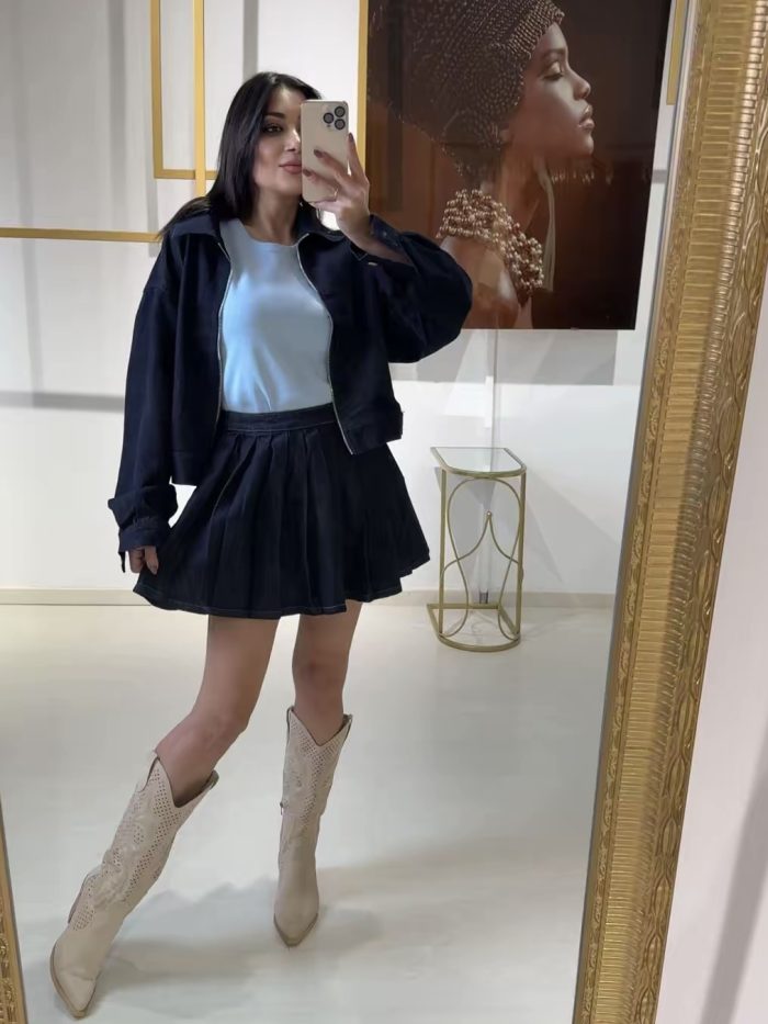 Μίνι Πλισέ Φούστα σε Μπλέ σκούρο Χρώμα
