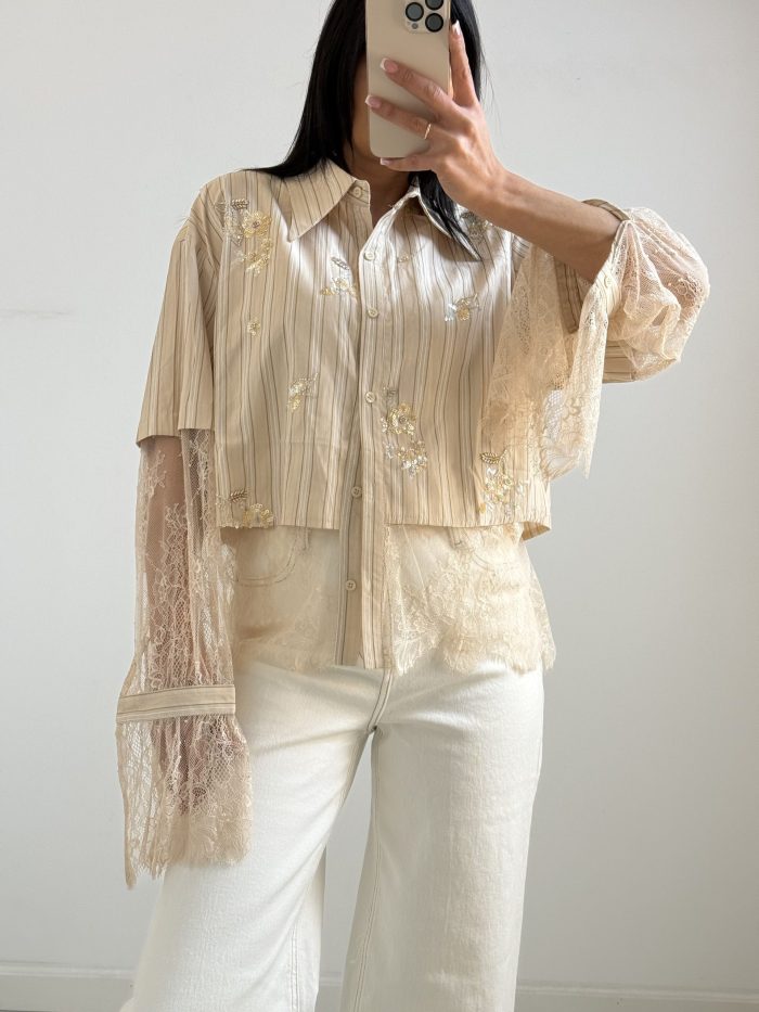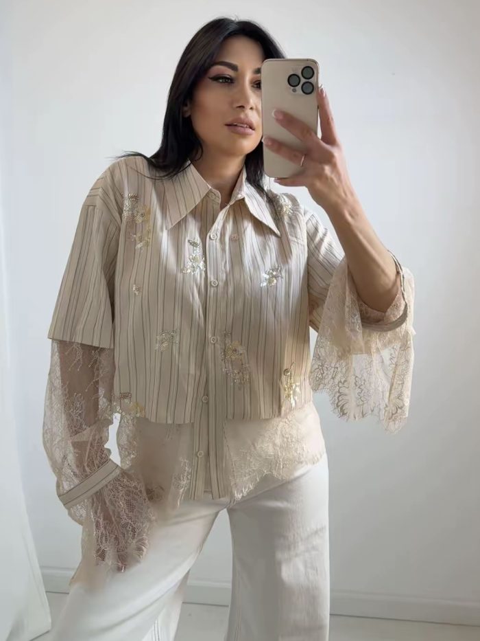 Γυναικείο Πουκάμισο με Δαντέλα & Κεντήματα – Μπέζ