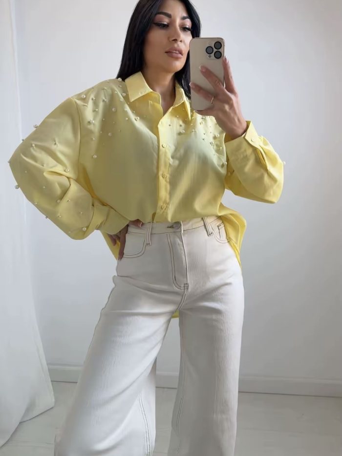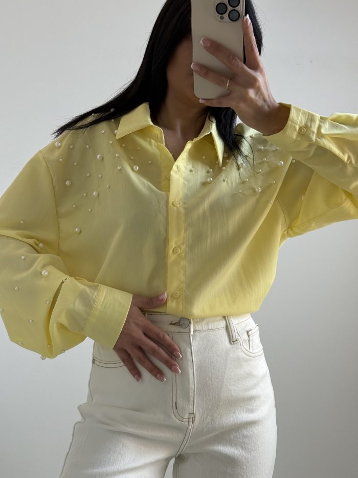 Γυναικείο Πουκάμισο Κίτρινο με Πέρλες – Oversized