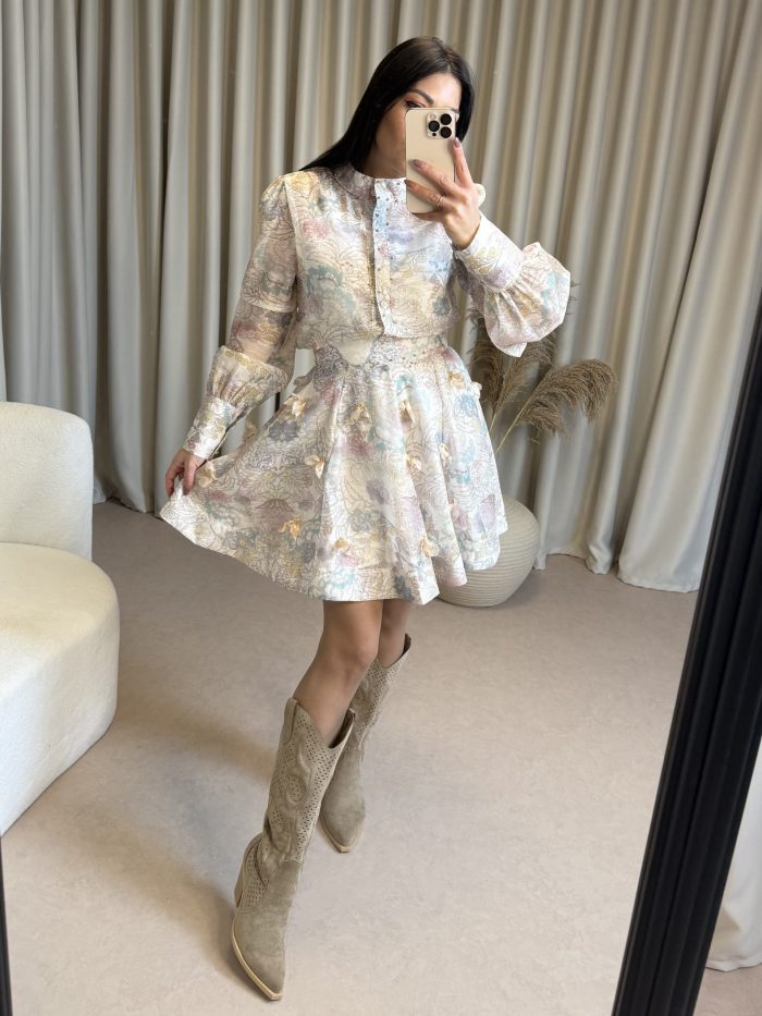 Floral Σετ Πουκάμισο με Φούστα