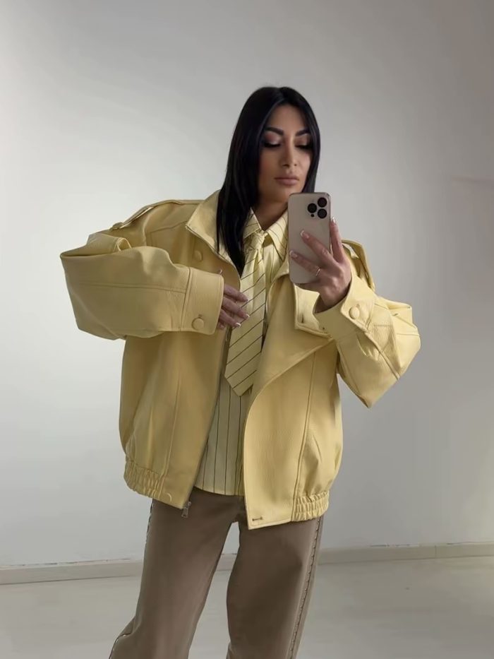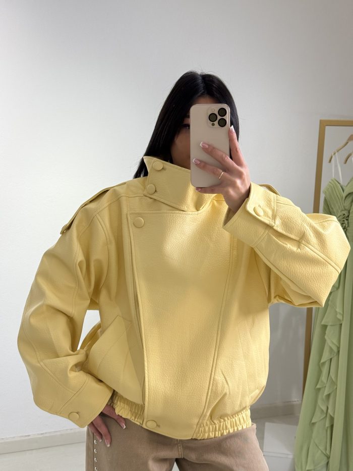 Oversized Δερμάτινο Jacket σε Παστέλ Κίτρινο