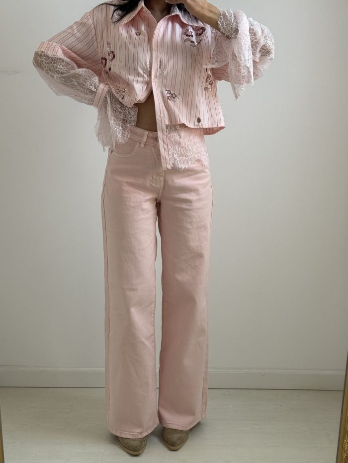 Ροζ Wide Leg Tζιν παντελόνι