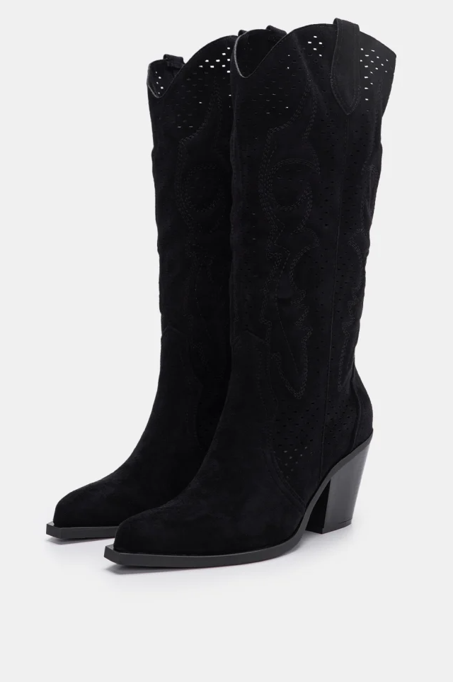 Γυναικείες Western Μπότες Μαύρες Διάτρητες με Τακούνι– Καλοκαιρινές Cowboy Boots