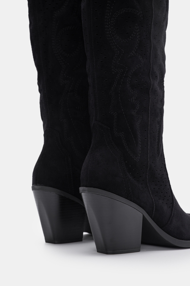 Γυναικείες Western Μπότες Μαύρες Διάτρητες με Τακούνι