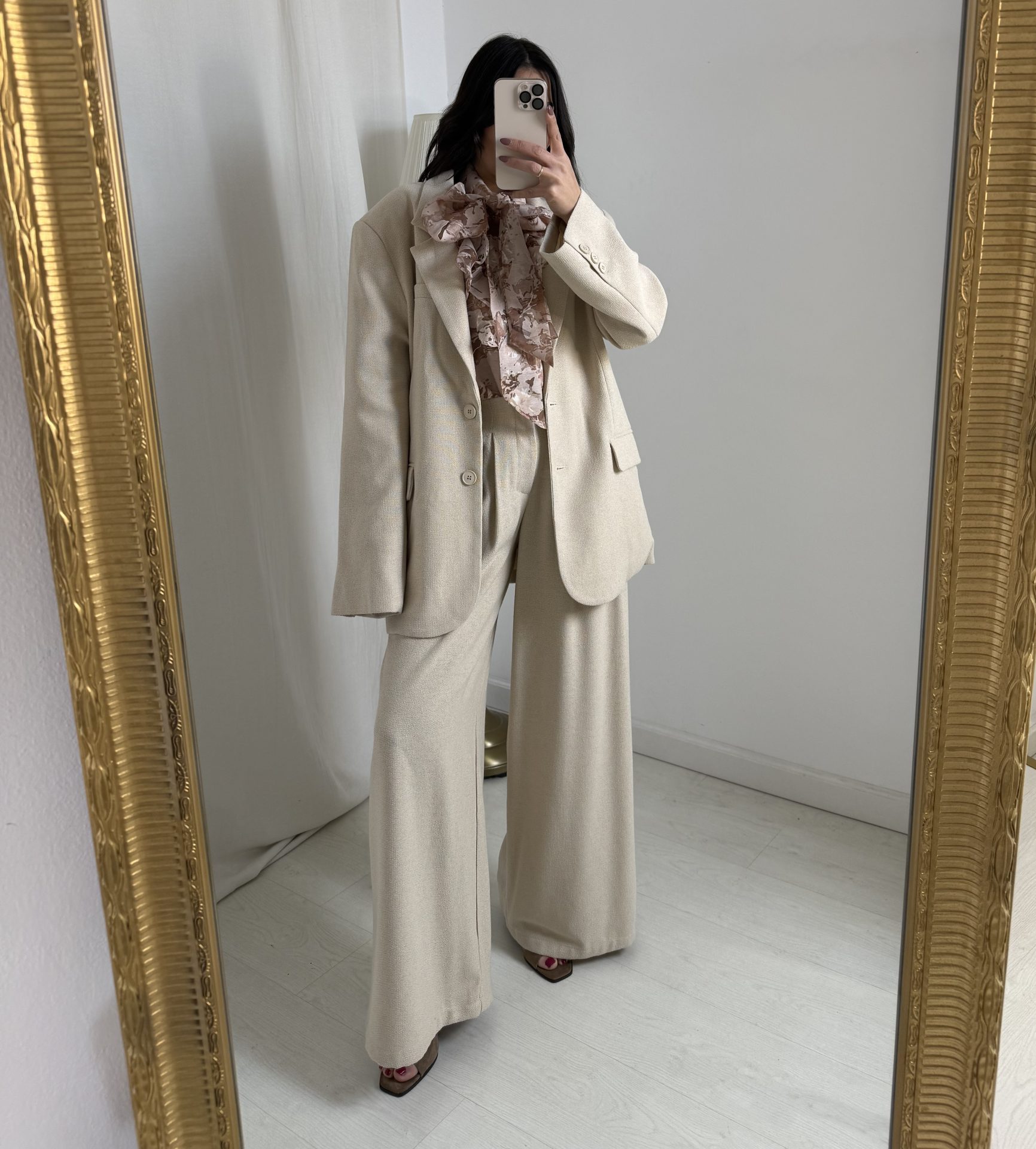 Σακάκι με Κλασικό Γιακά Μπεζ Oversized