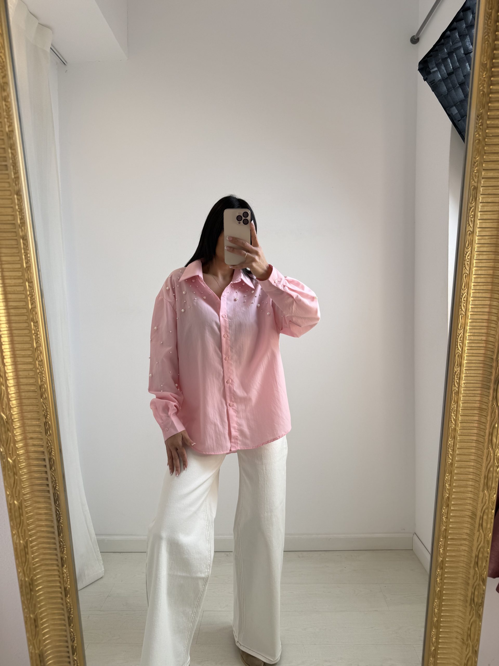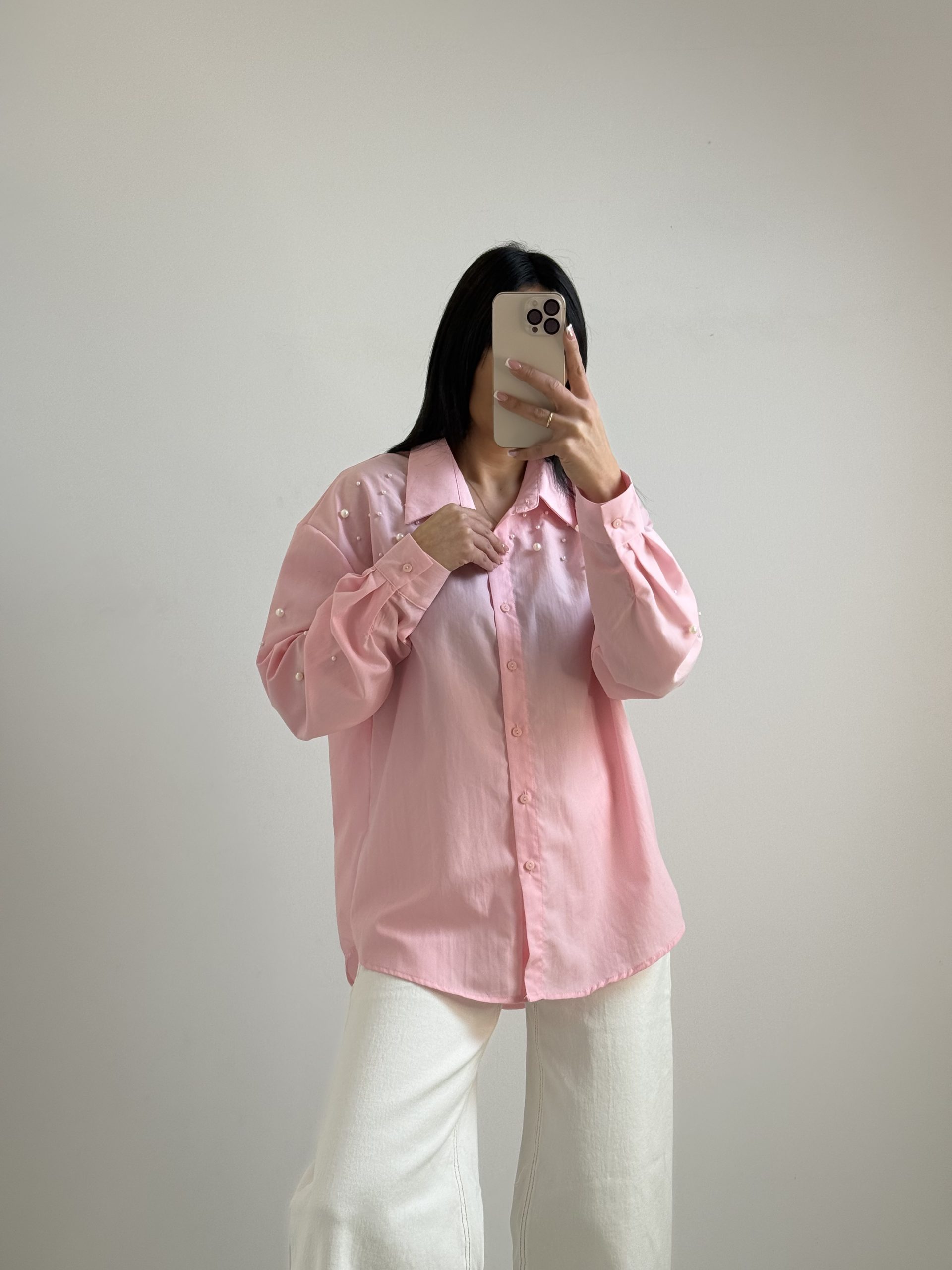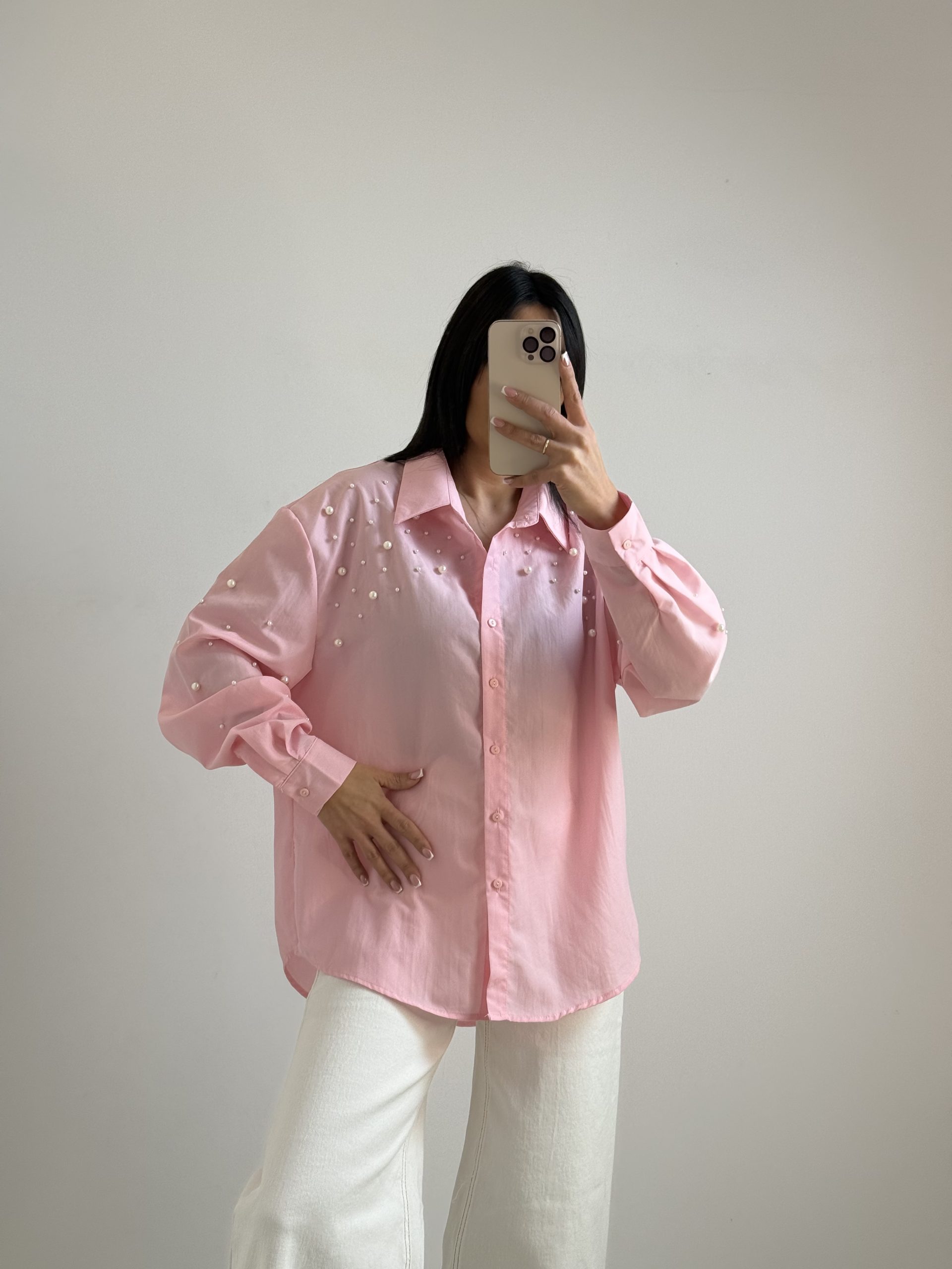 Γυναικείο Πουκάμισο Ρόζ με Πέρλες – Oversized