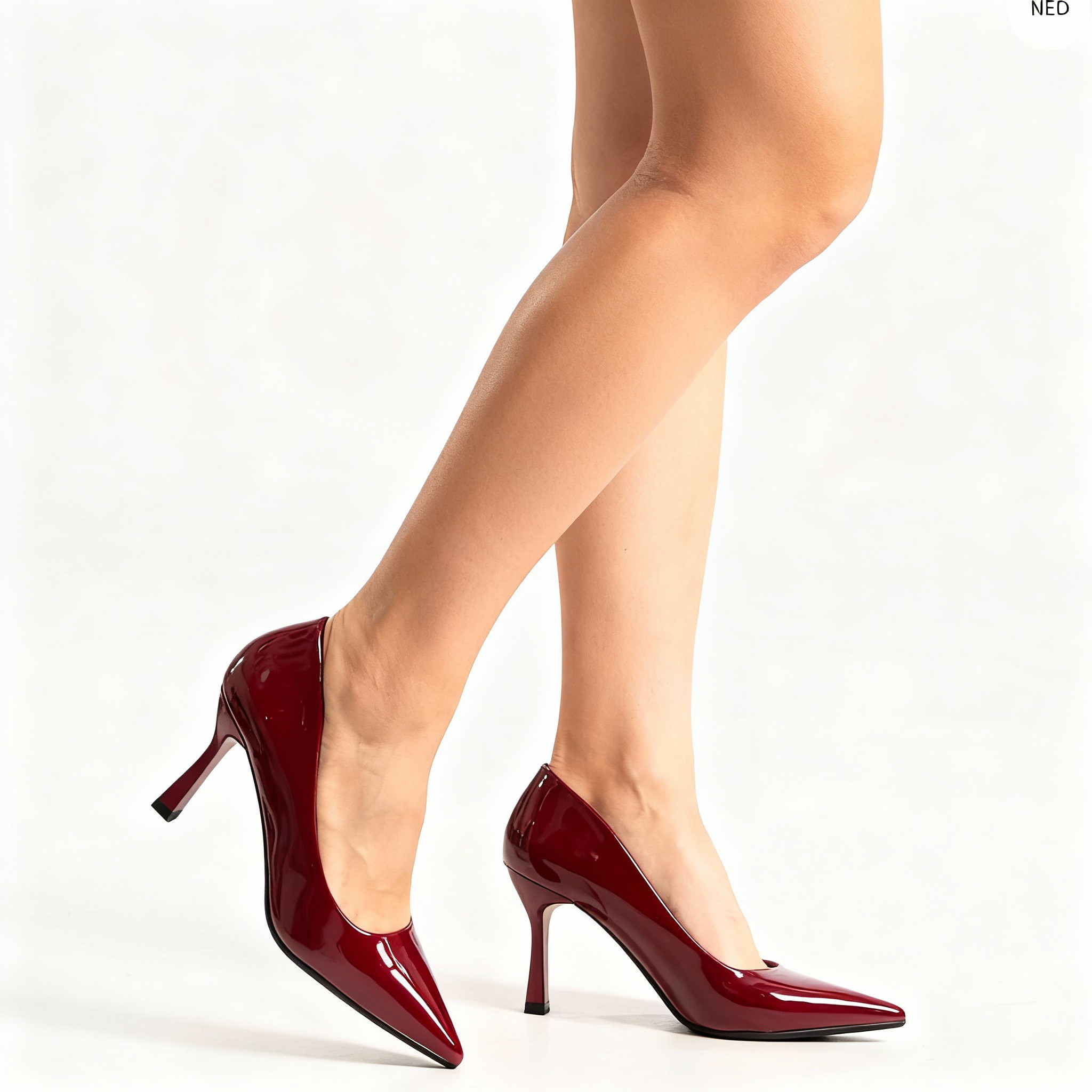 Λουστρίνι γόβες με λεπτό τακούνι – Μπορντό