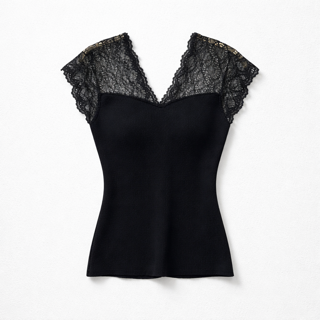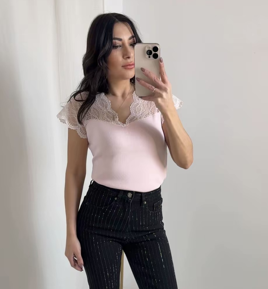 • Διακοσμητική δαντέλα σε λαιμόκοψη & μανίκια