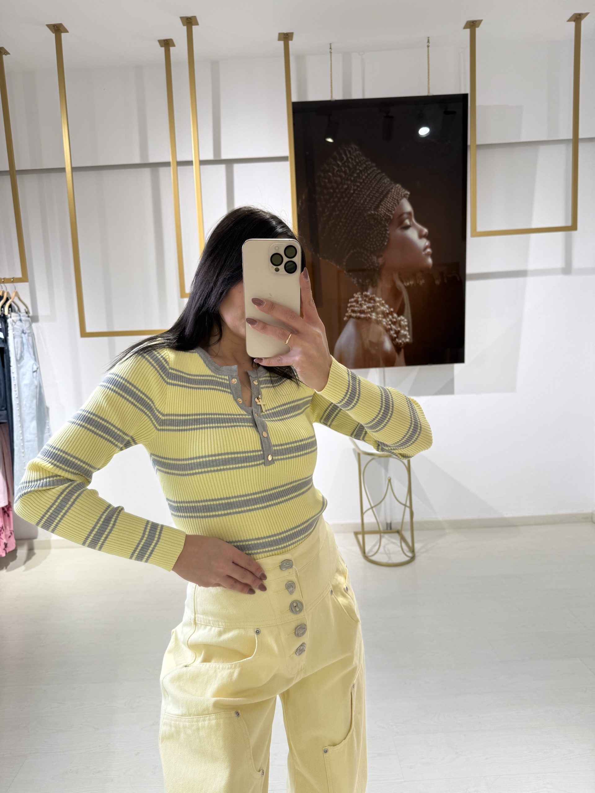 Μπλούζα Ριπ Ριγέ με Κουμπιά – Κίτρινη