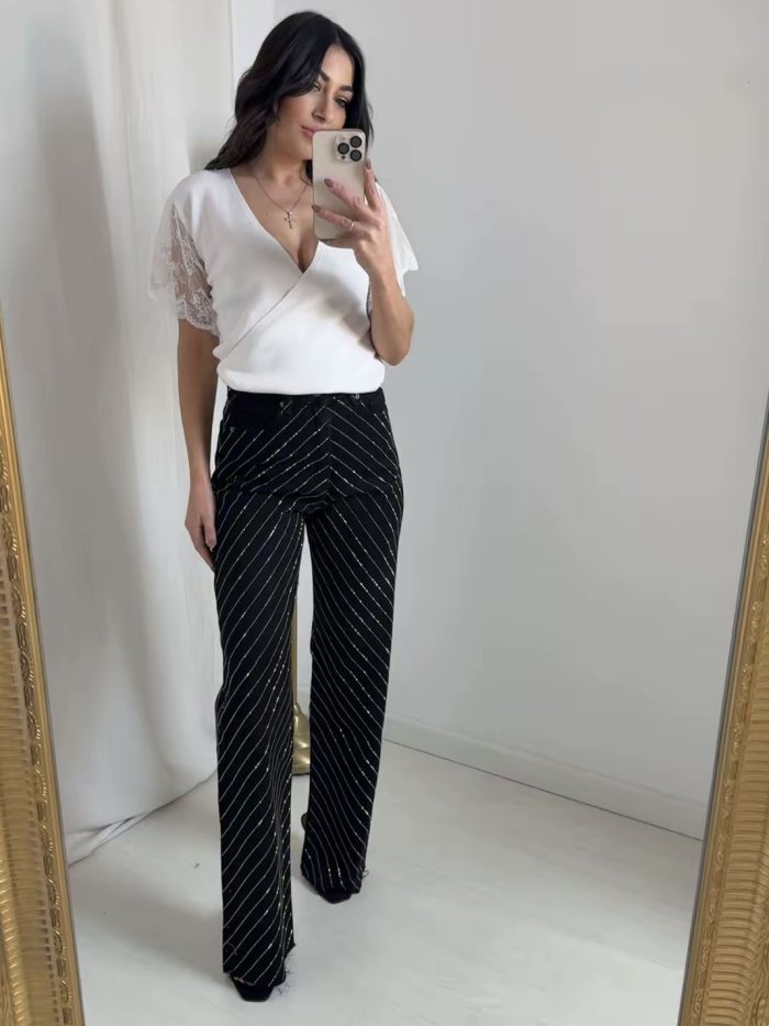 Γυναικείο Τζιν Καμπάνα Μαύρο Ψηλόμεσο με Στρας – Elegant & Chic
