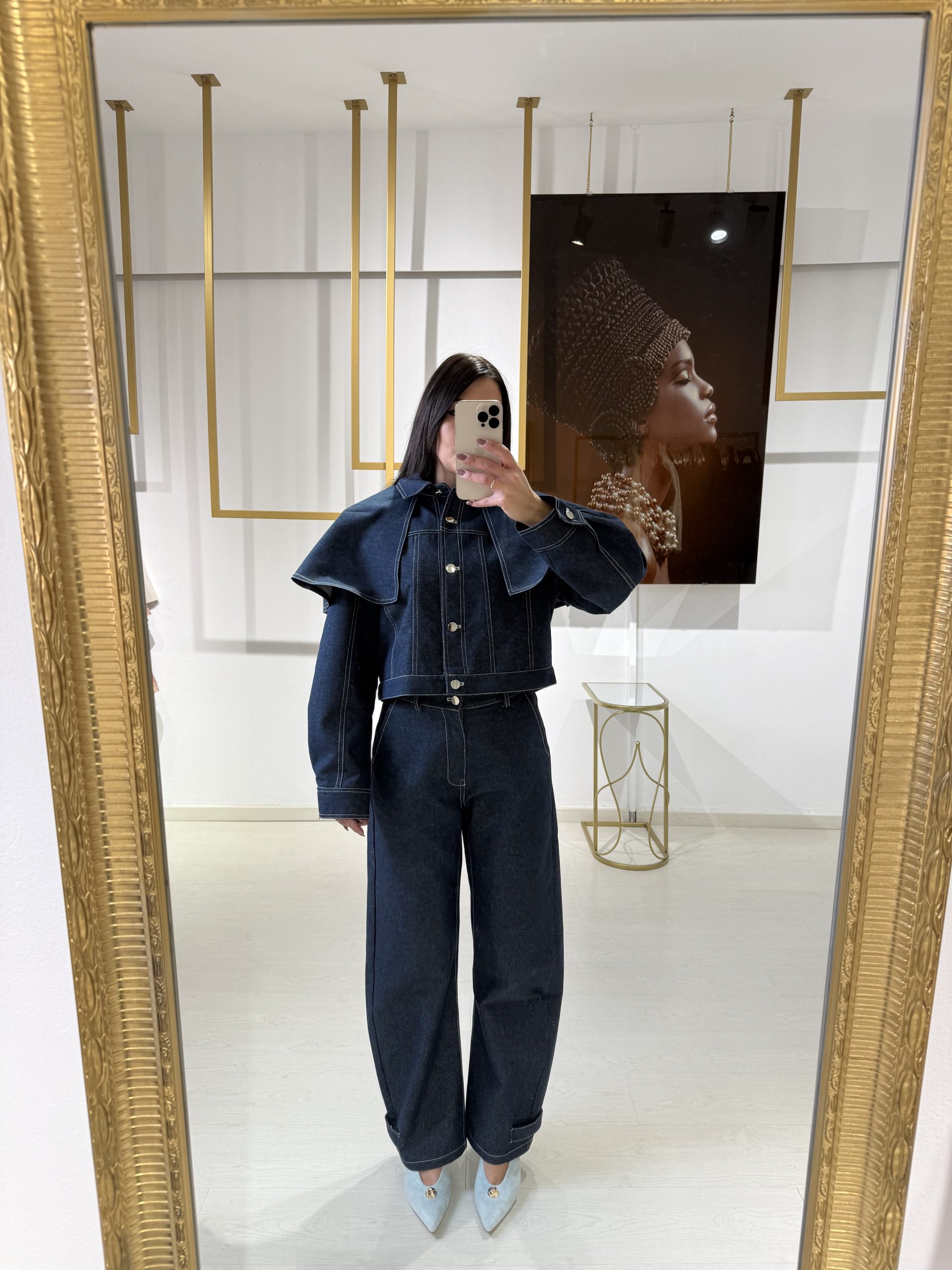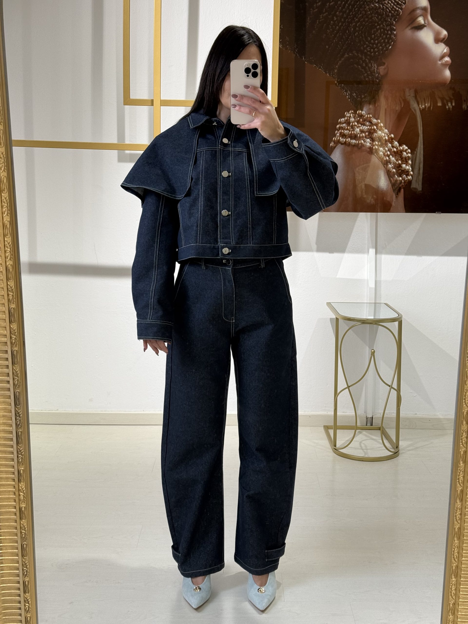 Σετ Denim με Εντυπωσιακό Γιακά & Ψηλόμεσο Παντελόνι