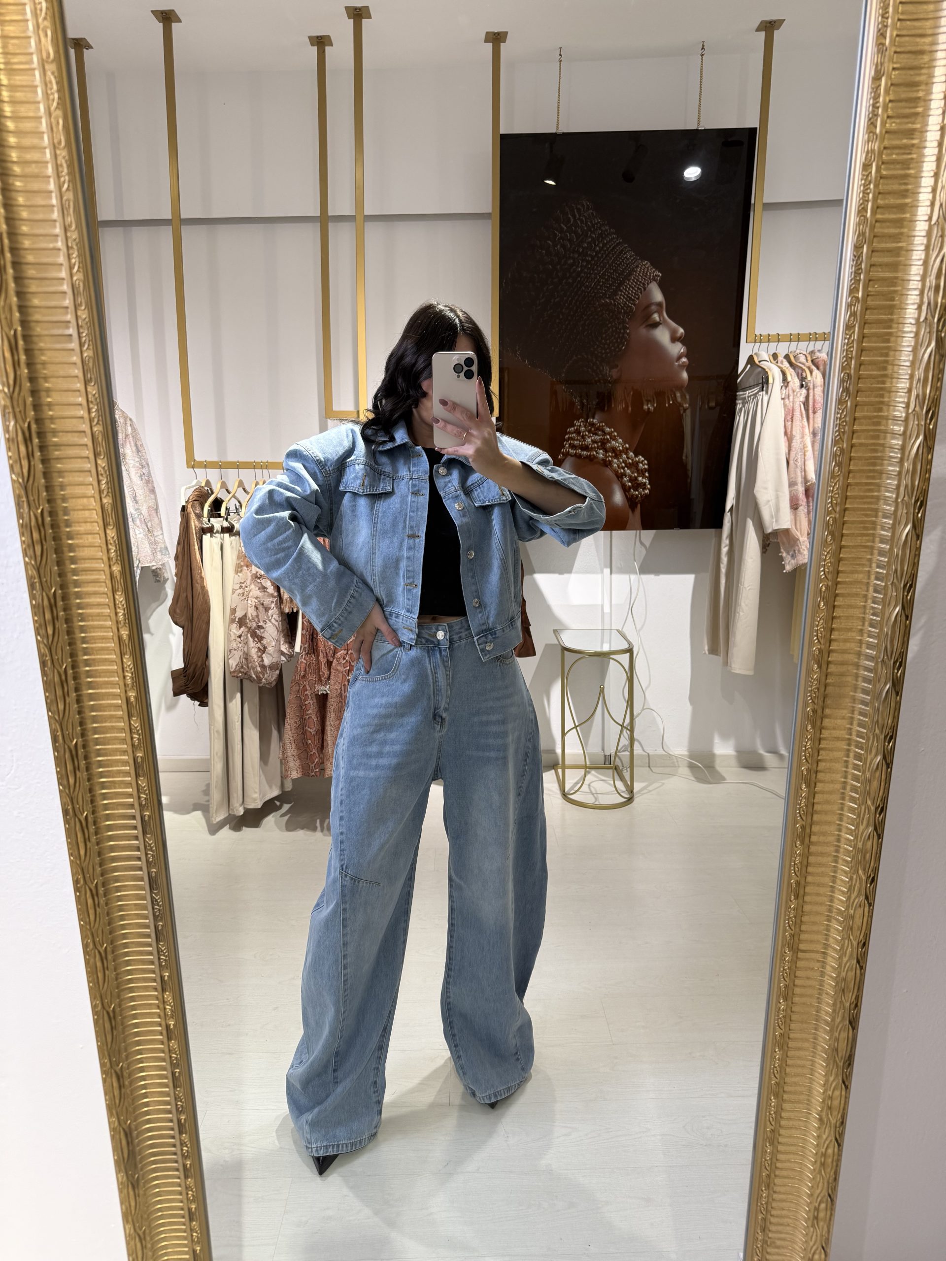 • Ιδανικό για casual & chic εμφανίσεις Ένα διαχρονικό denim σύνολο που δεν πρέπει να λείπει από τη συλλογή σας.