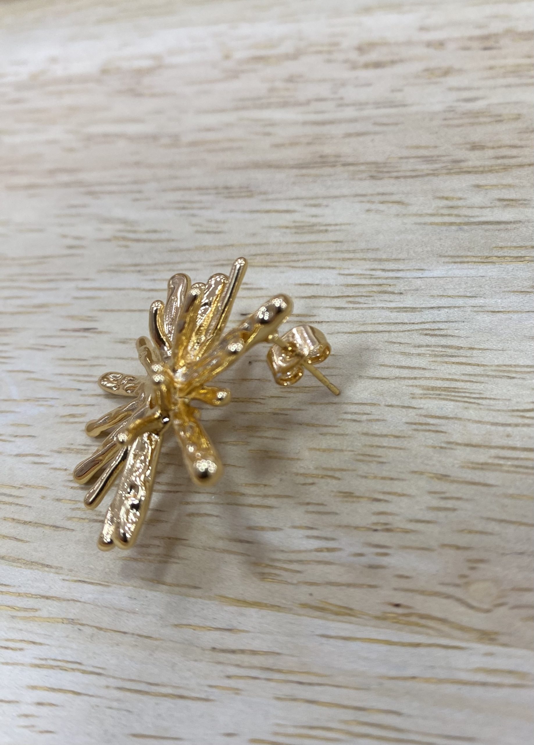 Κομψά σκουλαρίκια σε σχήμα ηλίου που αποπνέουν διαχρονική φινέτσα και σύγχρονη λάμψη. Κατασκευασμένα από μεταλλική βάση σε λαμπερό χρυσό τόνο, με λεπτομερή ακτινωτό σχεδιασμό που αιχμαλωτίζει το φως σε κάθε κίνηση. Ελαφριά και άνετα στη χρήση, ιδανικά για να αναβαθμίσουν τόσο τις καθημερινές όσο και τις βραδινές εμφανίσεις σας.