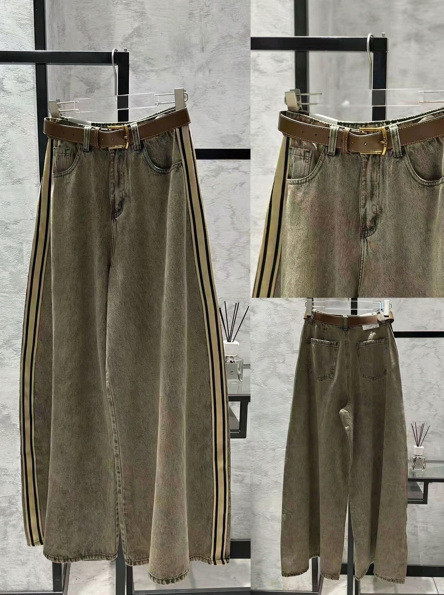 Αυτό το φαρδύ τζιν παντελόνι (wide leg) σε ξεβαμμένο, γκρι/καφέ χρώμα είναι ένα από τα πιο hot trends της φετινής σεζόν. Συνδυάζει την άνεση της φαρδιάς γραμμής με μια σπορ-chic αισθητική, χάρη στις χαρακτηριστικές ρίγες στο πλάι.