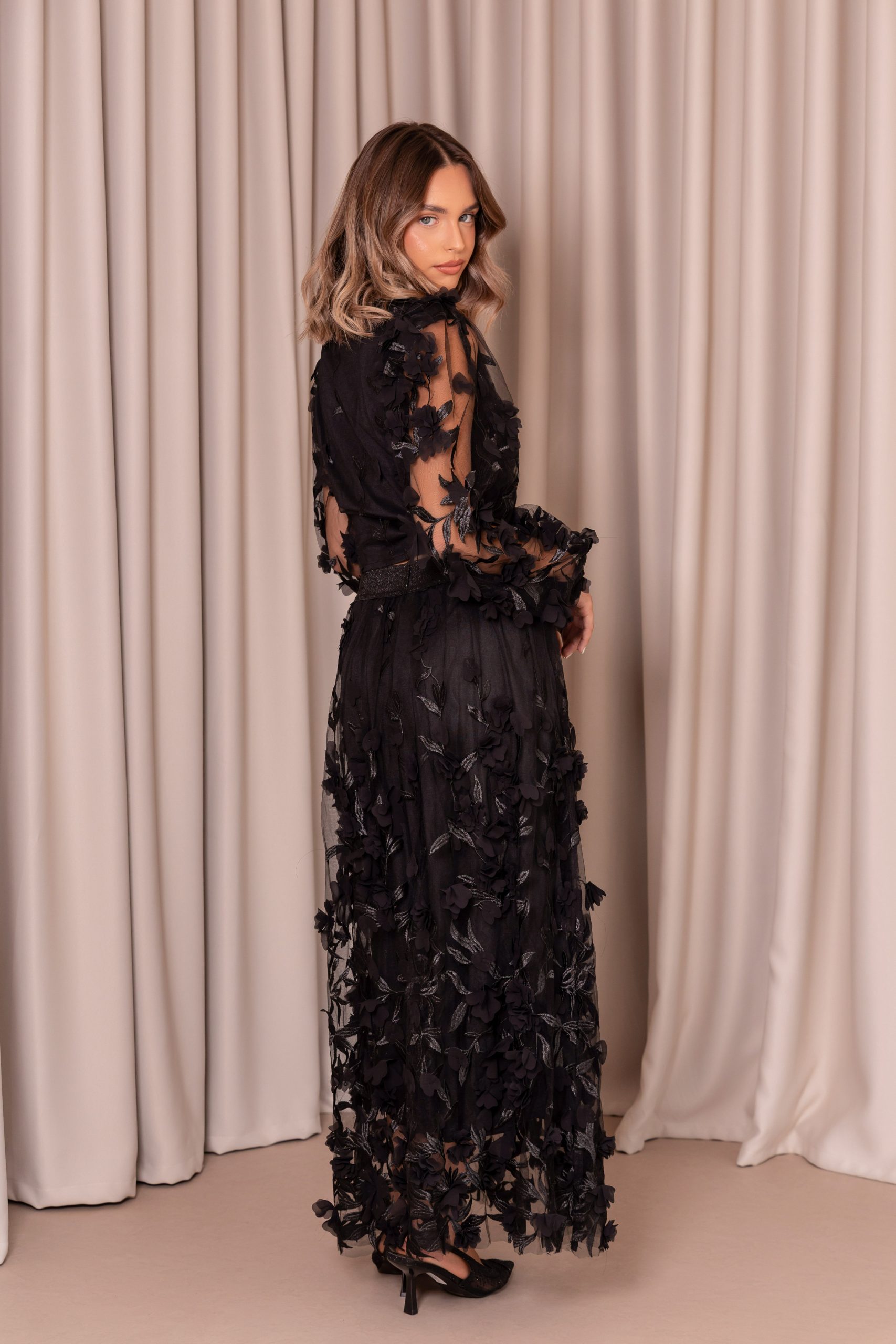Ύφασμα: Οργάντζα με 3D ανάγλυφα λουλούδια
