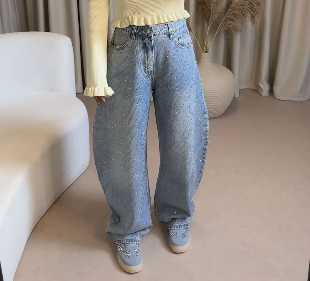Το Barrel Jeans με Strass είναι το απόλυτο fashion piece για όσες θέλουν ένα ιδιαίτερο γυναικείο τζιν που ξεχωρίζει.