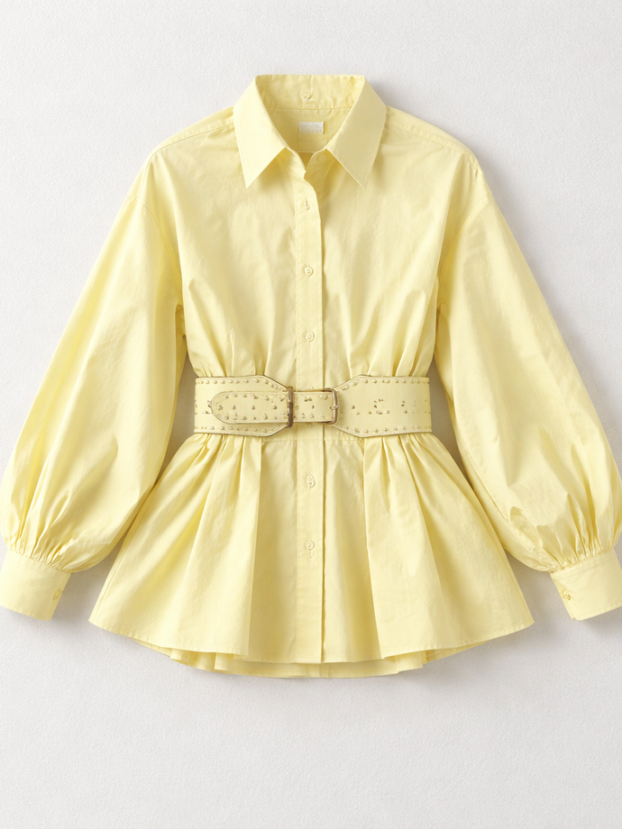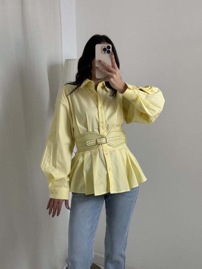 Κίτρινο Γυναικείο Πουκάμισο με Balloon Μανίκια & Ζώνη στη Μέση