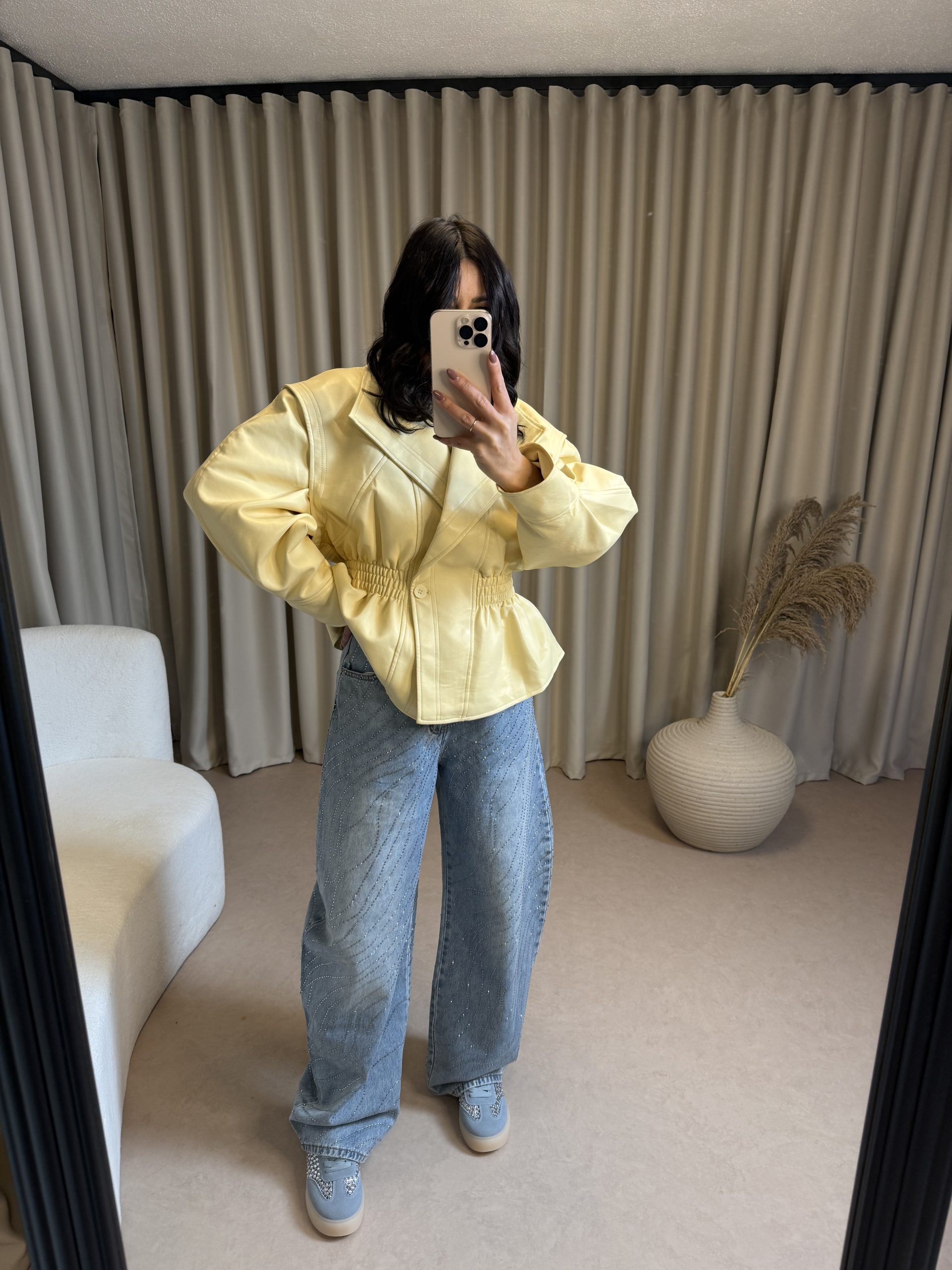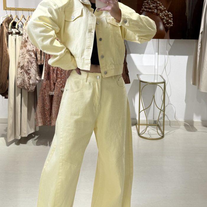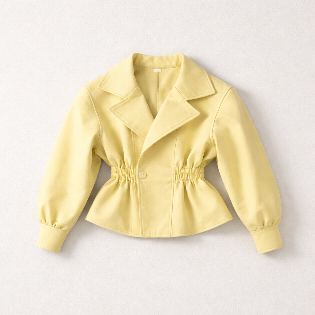 Αναβάθμισε το στυλ σου με αυτό το κομψό κοντό κίτρινο σακάκι, ιδανικό για chic και μοντέρνες εμφανίσεις. Διαθέτει γιακά με πέτο, διακριτικό κούμπωμα μπροστά και σφηκοφωλιά στη μέση που αγκαλιάζει τη σιλουέτα, προσφέροντας θηλυκή εφαρμογή. Τα μακριά μανίκια με μανσέτες και η ελαφριά υφή του υφάσματος το καθιστούν ιδανική επιλογή για άνοιξη και φθινόπωρο. Φόρεσέ το με τζιν, υφασμάτινο παντελόνι ή φούστα για κομψές εμφανίσεις από το πρωί έως το βράδυ.