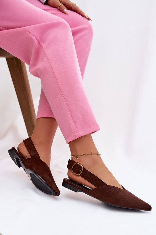 Γυναικείο Slingback Mule Παπούτσι σε Καφέ Σουέτ Κομψό και διαχρονικό slingback παπούτσι που συνδυάζει άνεση και στυλ. Ο μυτερός σχεδιασμός χαρίζει θηλυκή γραμμή, ενώ το λουράκι με μεταλλική αγκράφα εξασφαλίζει σταθερή εφαρμογή και elegant λεπτομέρεια.