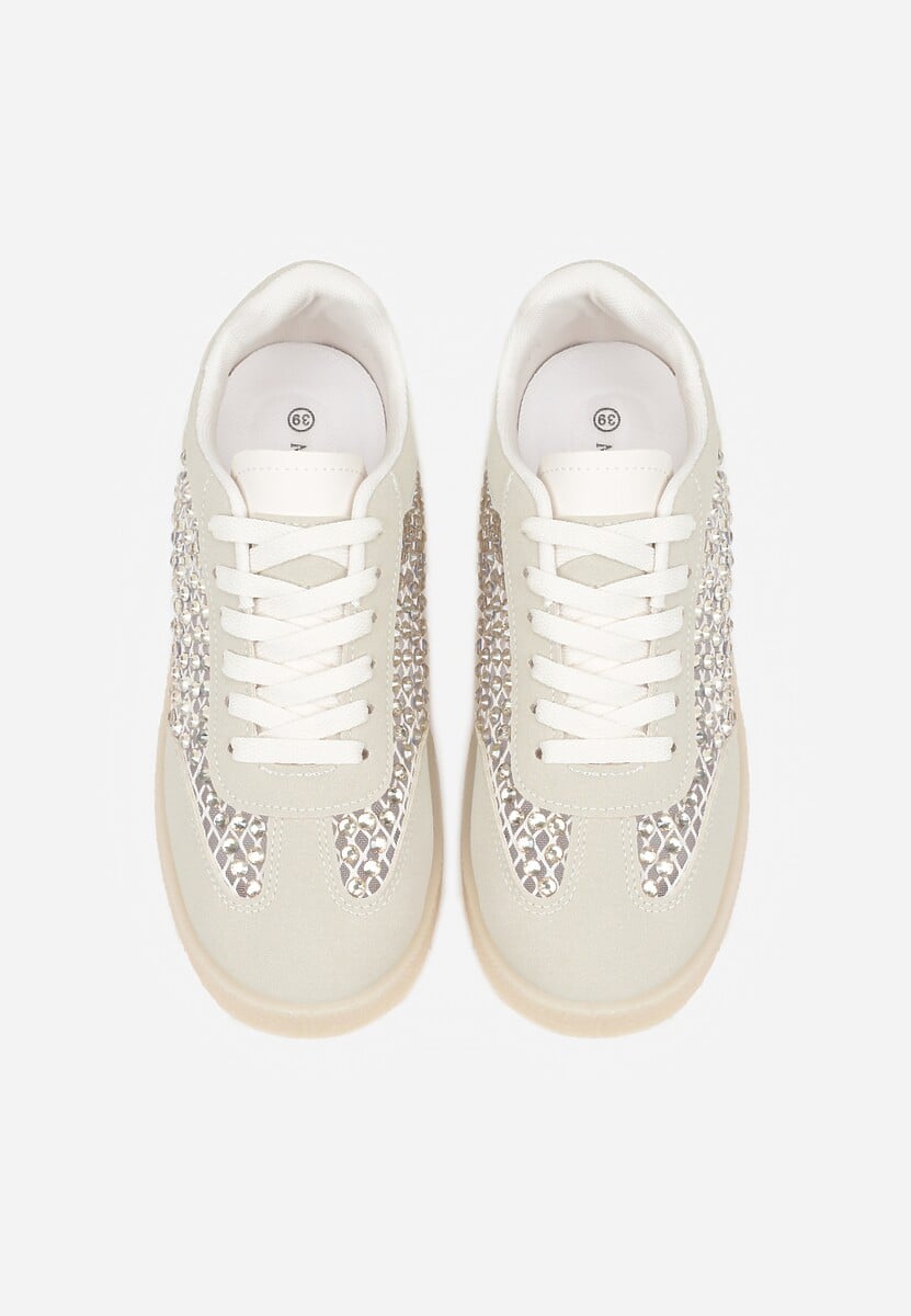 Αναβάθμισε το καθημερινό σου look με αυτά τα κομψά sneakers που συνδυάζουν άνεση και λάμψη. Διαθέτουν διακοσμητικά στρας στα πλαϊνά για μια διακριτική glam πινελιά, ενώ ο ουδέτερος χρωματισμός τους τα κάνει εύκολα να φορεθούν από το πρωί μέχρι το βράδυ.